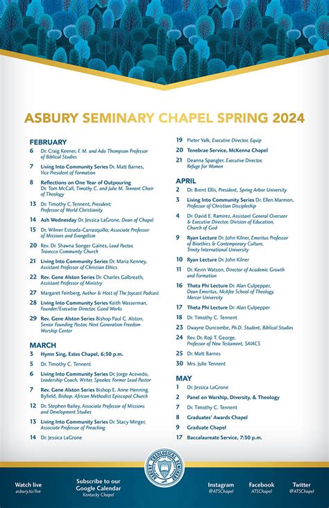 • Asbury Theological Seminary Spring 2024 Schedule Zoom Classes